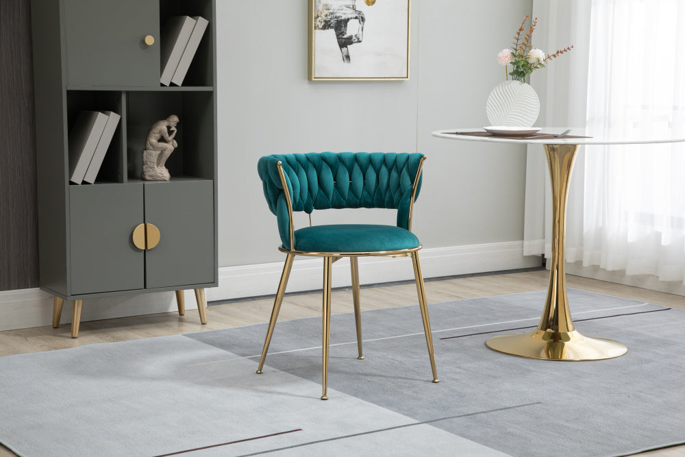 This elegantly crafted chair blends charm with durable craftsmanship. Upholstered in luxurious velvet fabric and filled with plush, high-density foam, it offers a cozy retreat for enjoying a cup of coffee, diving into a beloved book, or simply unwinding in style. The sturdy solid and plywood frame provides lasting support, while the gracefully tapered golden metal legs add a touch of timeless sophistication. With a thoughtfully designed seat height of 19.29", a width of 17.72", and a depth of 16.93", this chair ensures both comfort and elegance. Measuring 22.44" x 21.65" x 27.56" and crafted with meticulous attention to detail, it seamlessly blends into your unique-inspired spaces, making it a charming addition to any home.
